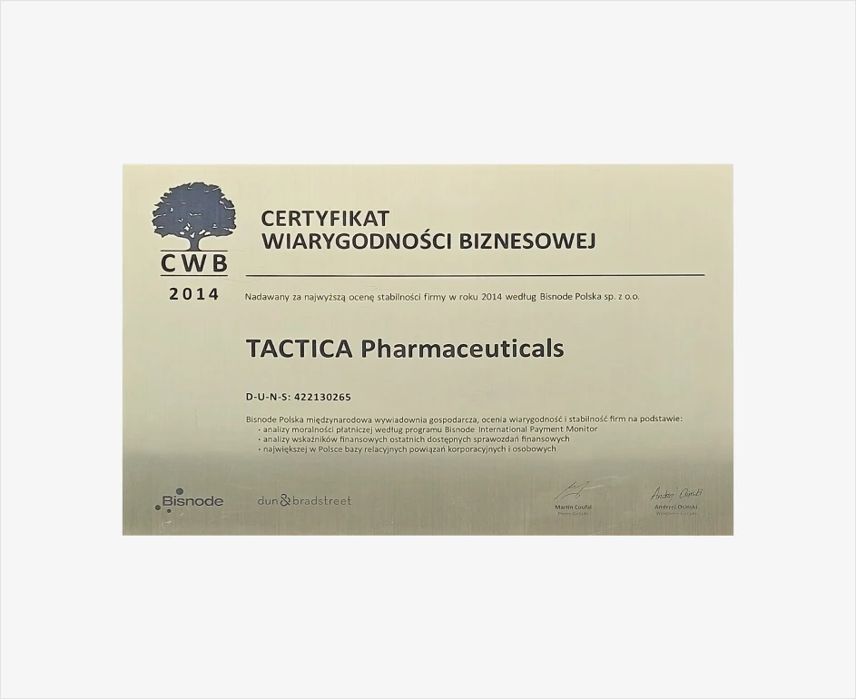 Witaj w TACTICA Pharmaceuticals, firmie, która od wielu lat działa na rynku farmaceutycznym. Nasza firma zrodziła się z pasji do pomagania ludziom